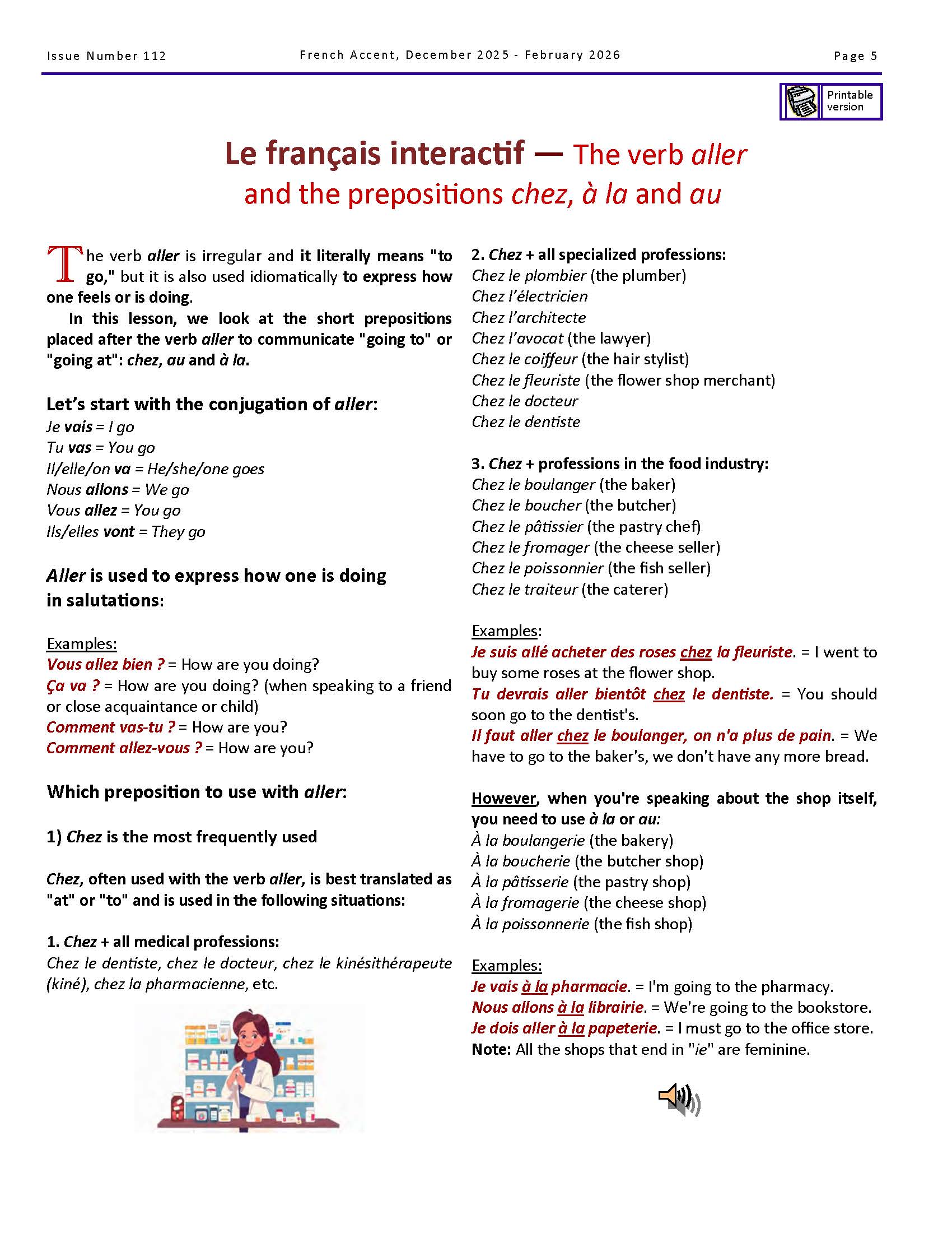 Just a quick line to say how much we enjoy your French learning Magazine, it is just the right mix of interesting articles containing just what you need to know in new situations but we lack the background and French social skills, your articles are helping to fill those gaps. The audio links are also excellent, please keep up the good work.